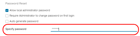 Если чекбокс Auto generate password не установлен — появляется возможность ручного ввода пароля администратора в поле Specify password.