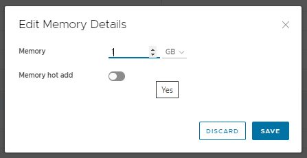 Последним идёт блок настройки памяти, в котором можно установить количество выдаваемой VM оперативной памяти и установить возможность ее горячего добавления.