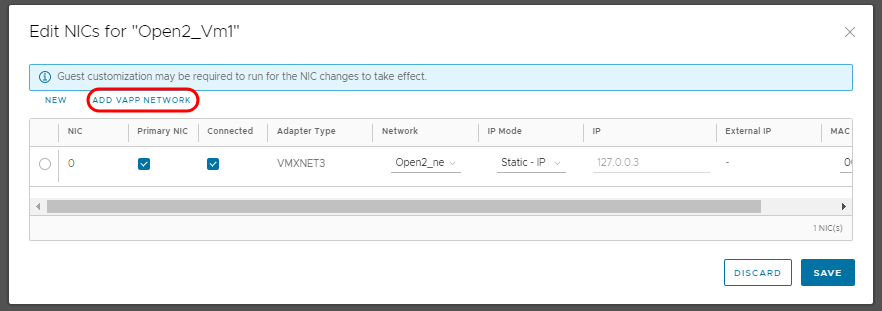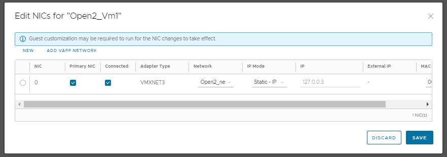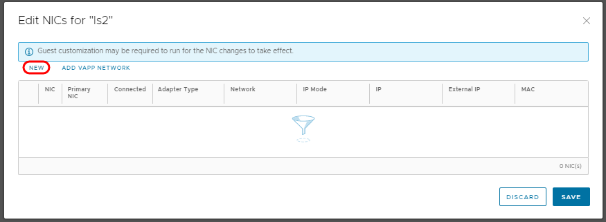 Если вам нужно добавить к виртуальной машине сетевое устройство, подключенное к изолированной или маршрутизируемой сети — нажмите NEW.