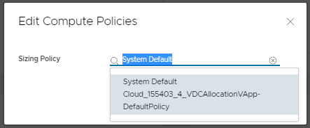 Блок Политики размеров, выдаваемых ресурсов по умолчанию имеет один предустановленный набор настроек.