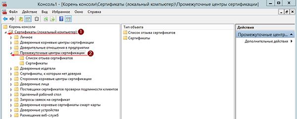 Установка сертификата Центра Сертификации (.CA) на IIS 8
