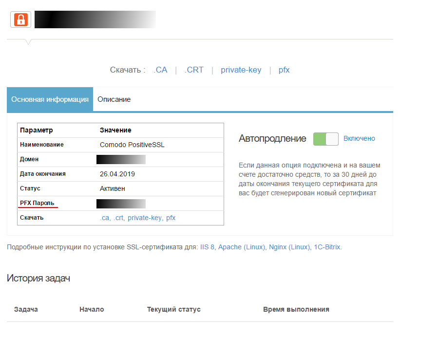 После успешного заказа SSL-сертификата файлы для его установки появятся в панели управления cloudshop24.ru , (меню SSL):