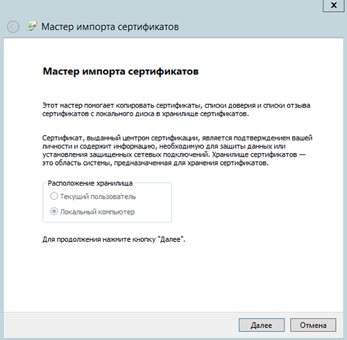 В открывшемся окне нажмите Далее (Next). Выберите загруженный из панели управления cloudshop24.ru файл .CA-сертификата и нажмите Открыть (Open).