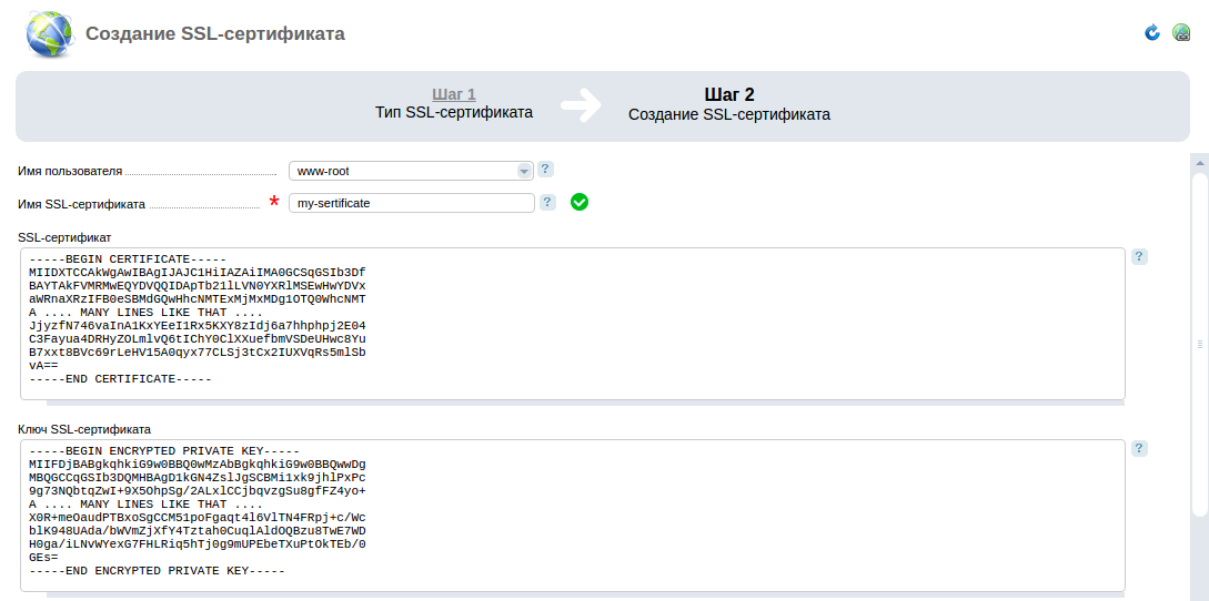 - В поле «Имя SSL-сертификата» введите подходящее для вас имя сертификата.
