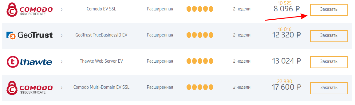 После выбора сертификата нажмите кнопку “Заказать”.