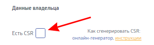 Далее Вы будете перенаправлены на страницу заказа SSL-сертификата и генерации CSR. Снимите галочку с опции “Есть CSR”.