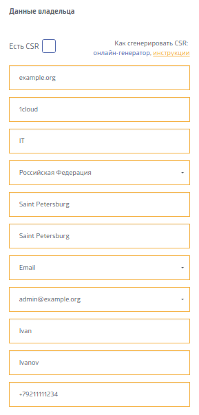 Заполнение полей при генерации CSR