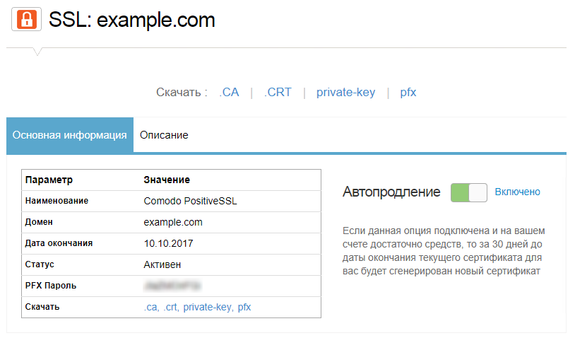 После заказа сертификата в панели управления появятся все необходимые файлы.