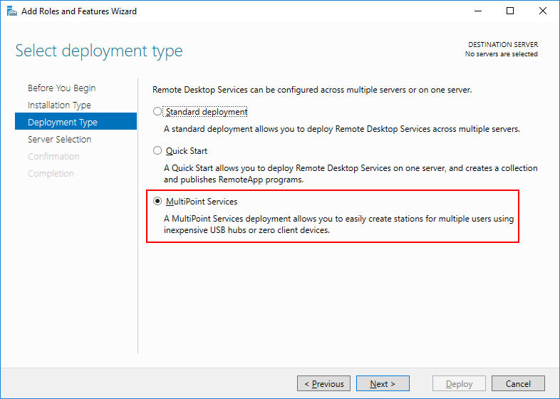 Для того чтобы установить службу на ваш локальный VPS выберете опцию MultiPoint Services.