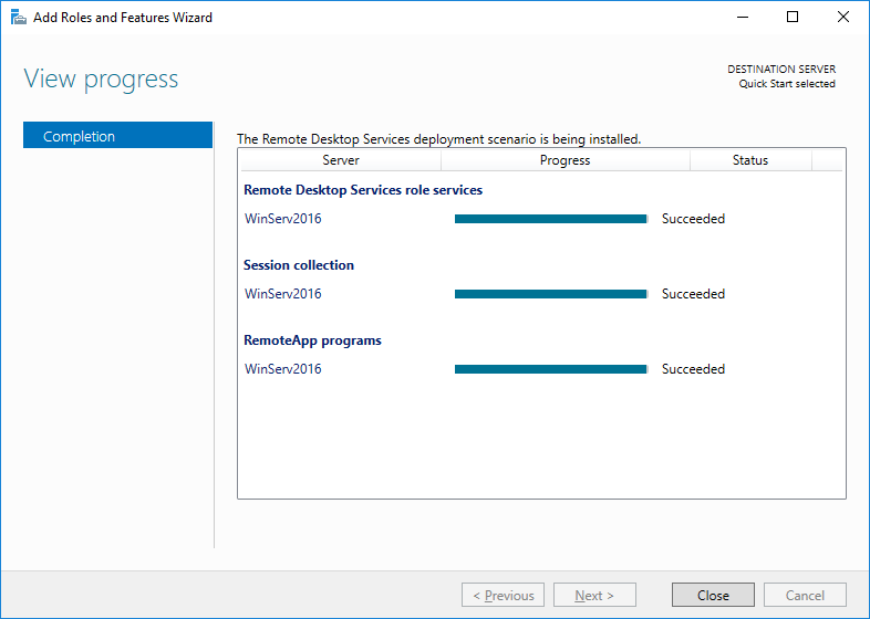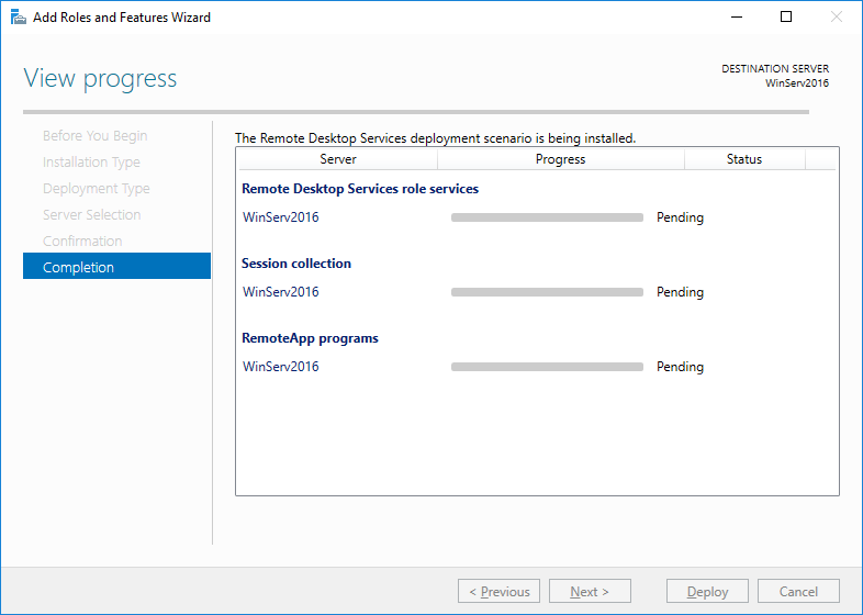 Начнется развертывание службы, которое может занять продолжительное время, по окончанию которого, ваш сервер будет перезагружен.