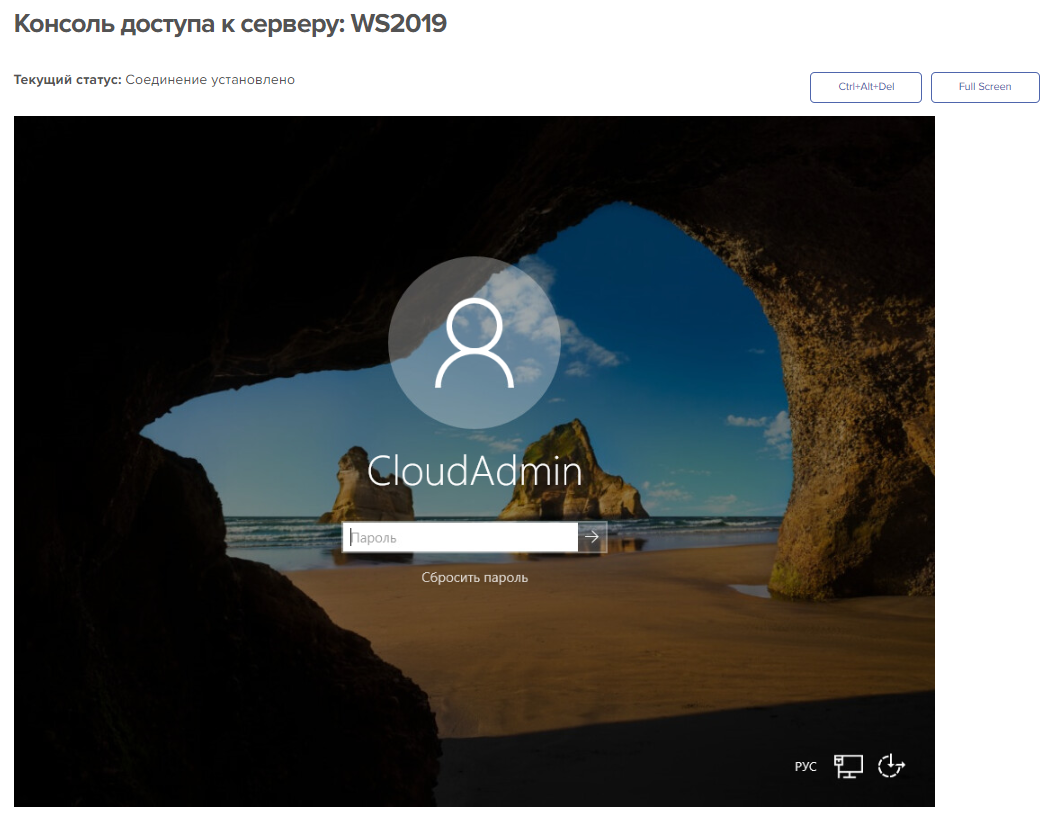 После перехода в Web-консоль откроется RDP-сессия в браузере.